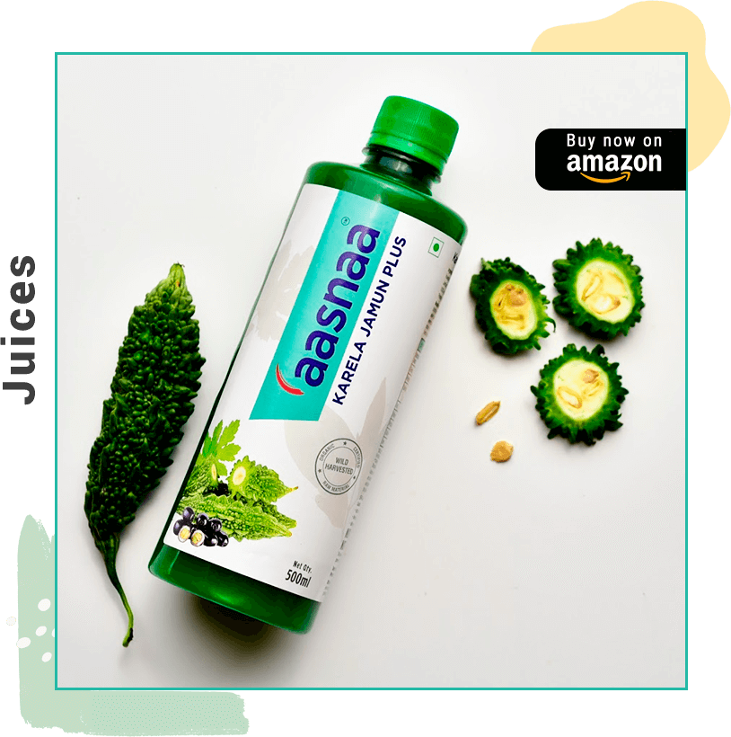 Karela or Bitter gourd (Momordica charantia) and Jamun or Indian Black berry (Syzygium cumini) are well known Medicinal fruits that help in sugar metabolism The Aasnaa Karela Jamun Juice is from Certified Organic wild-harvested Karela and Jamun fruit bursting with medicinal properties